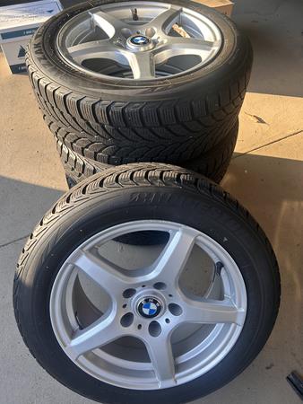 I have a set of four 16" wheels mounted with Bridgestone Blizzak snow tires size 205/55 16. The tires have 4mm tread left on them, date coded from 2013. I have used these regularly on my E36 for the past 5 winters, but have now retired the car from snow duty so no need for these anymore. The tires do show some cracking in the treads so not sure how many more seasons it will be safe to use these. Note that although the wheels have the BMW logo these are not BMW wheels. Nevertheless they look right on an E36 generation car.